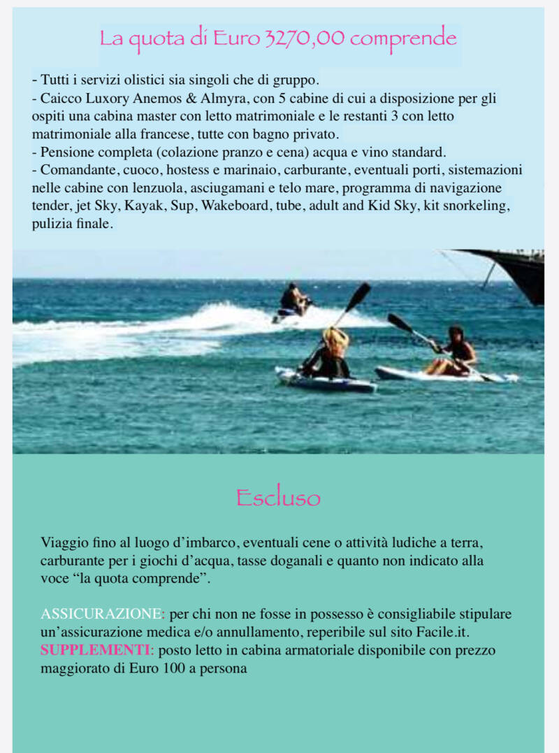 vivi una settimana di mare, relax e benessere psicofisico a bordo di un meraviglioso caicco. con skipper, Hoste e chef tutto incluso, pensiamo a tutto noi! tu devi solo pagare il traporto per raggiungerci, traghetto.